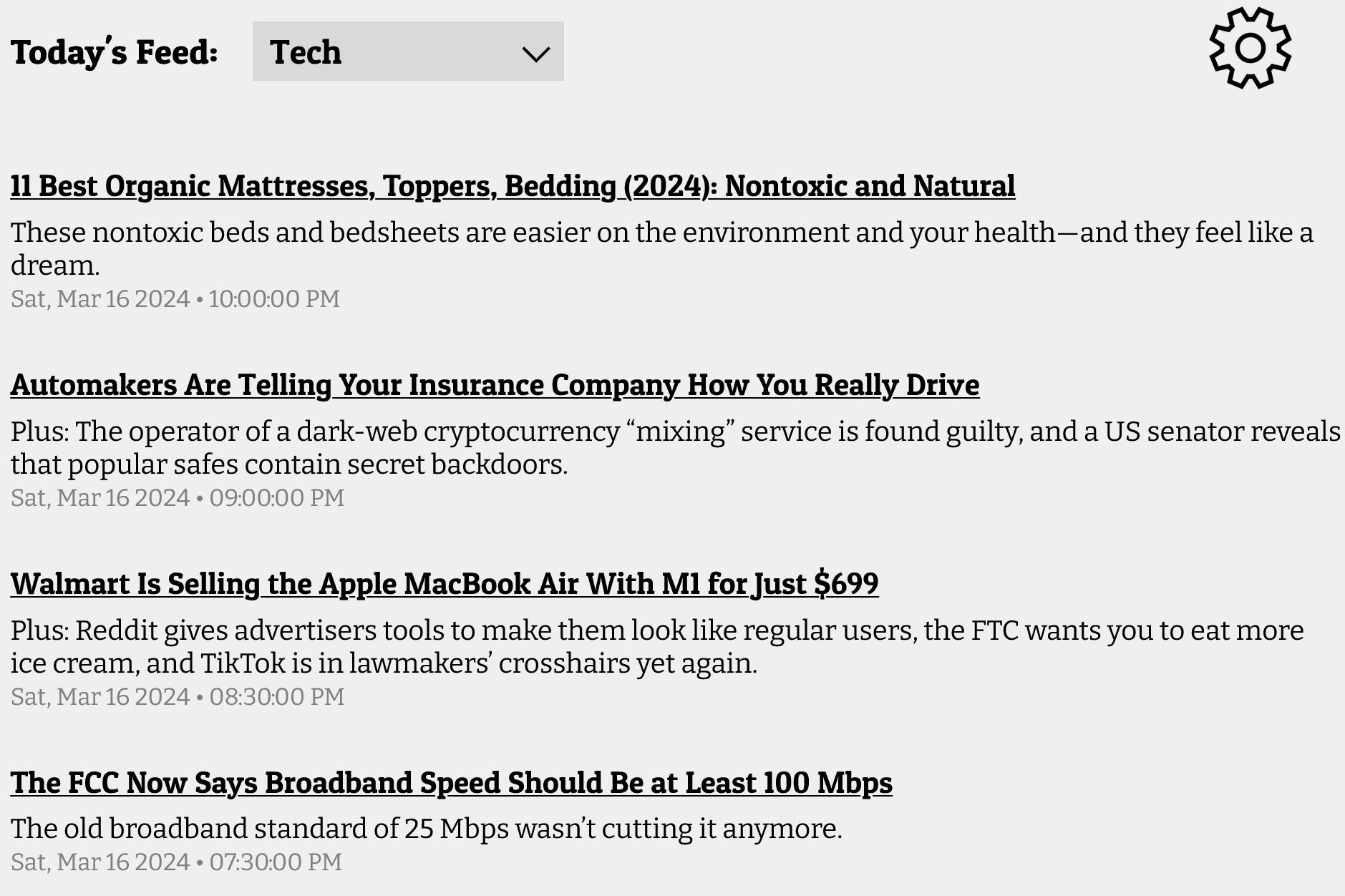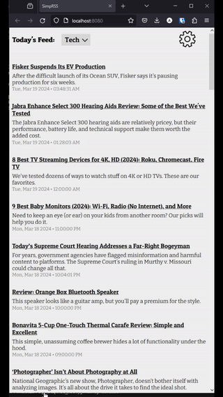 So this major gripe leads to here. I want an RSS reader that will allow me to read full articles without ever having to leave.