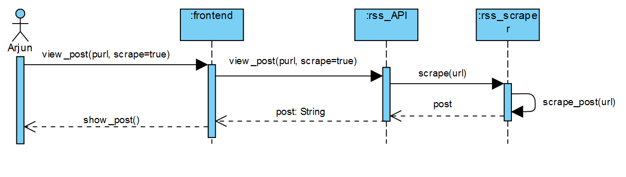 Then, I did some sequence diagrams depicting a few flows of the program. The figure above shows a sequence where a user wants to get an article with full text extraction.