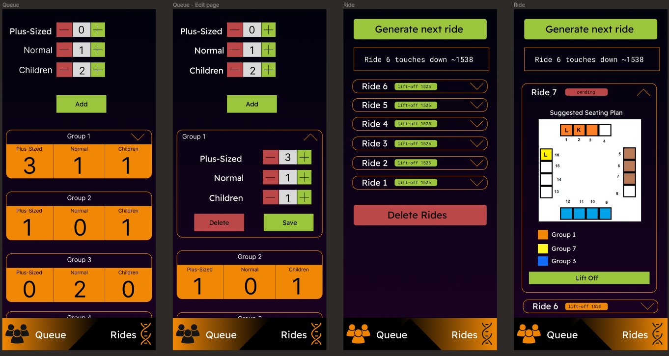So I edited the code. I added a section that “pre-processes” the queue so that I could fit the most amount of people in the ride that the groups would allow. Subtracting the amount of guests going for the ride from the total amount of seats the ride has, gives you the amount of gaps that can be left on the ride. I divide that value by the amount of groups to get the average amount of gaps that should be allocated between groups.